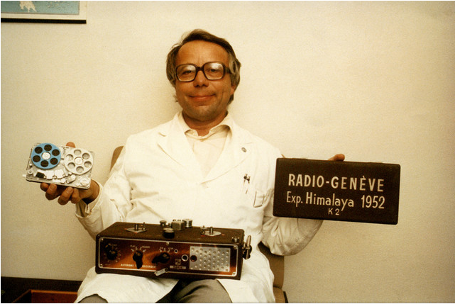 Stefan Kudelsky con uno de los primeros Nagras, utilizado en una expedición al Himalaya en 1952.