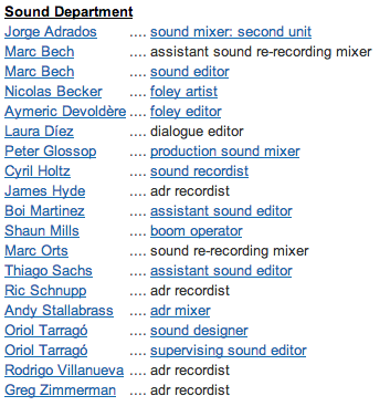 Departamento de sonido de -Lo imposible-