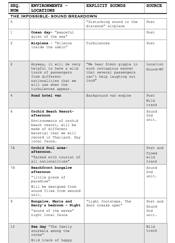 Para descubrir todos estos elementos, matices y dinámicas del mundo sonoro de -Lo Imposible- nos hemos puesto en contacto con el Diseñador de sonido del mismo, Oriol Tarragó, el cual nos ha enviado el siguiente texto, que bajo el título de -Los Sonidos de lo Imposible. Los sonidos de las emociones-, nos explica magistralmente como ha gestado y ejecutado, junto a todo su gran equipo de trabajo, la creación de esta emocionante, épica y sensorial -Lo Imposible-, de J.A Bayona.