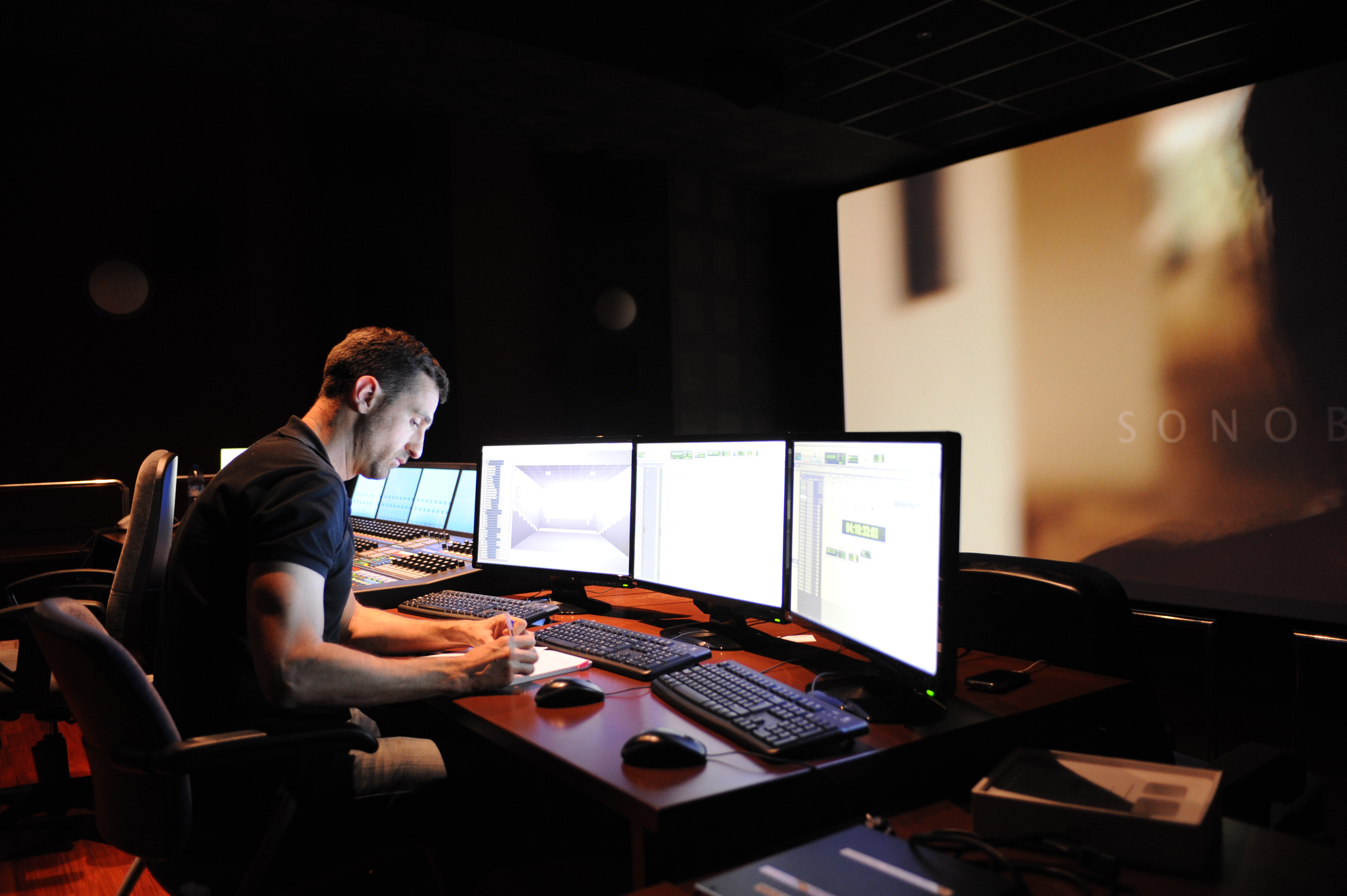Como en las dos salas de mezclas de Sonoblok tienen DFC (neve) con sistema Encore de automatización, conservamos todas las automatizaciones de la mezcla 5.1 y las aprovechamos para la sala Immsound, así pudimos mantener todas las equalizaciones dinámicas, compresiones, etc… y solo teníamos que recolocar en el espacio,