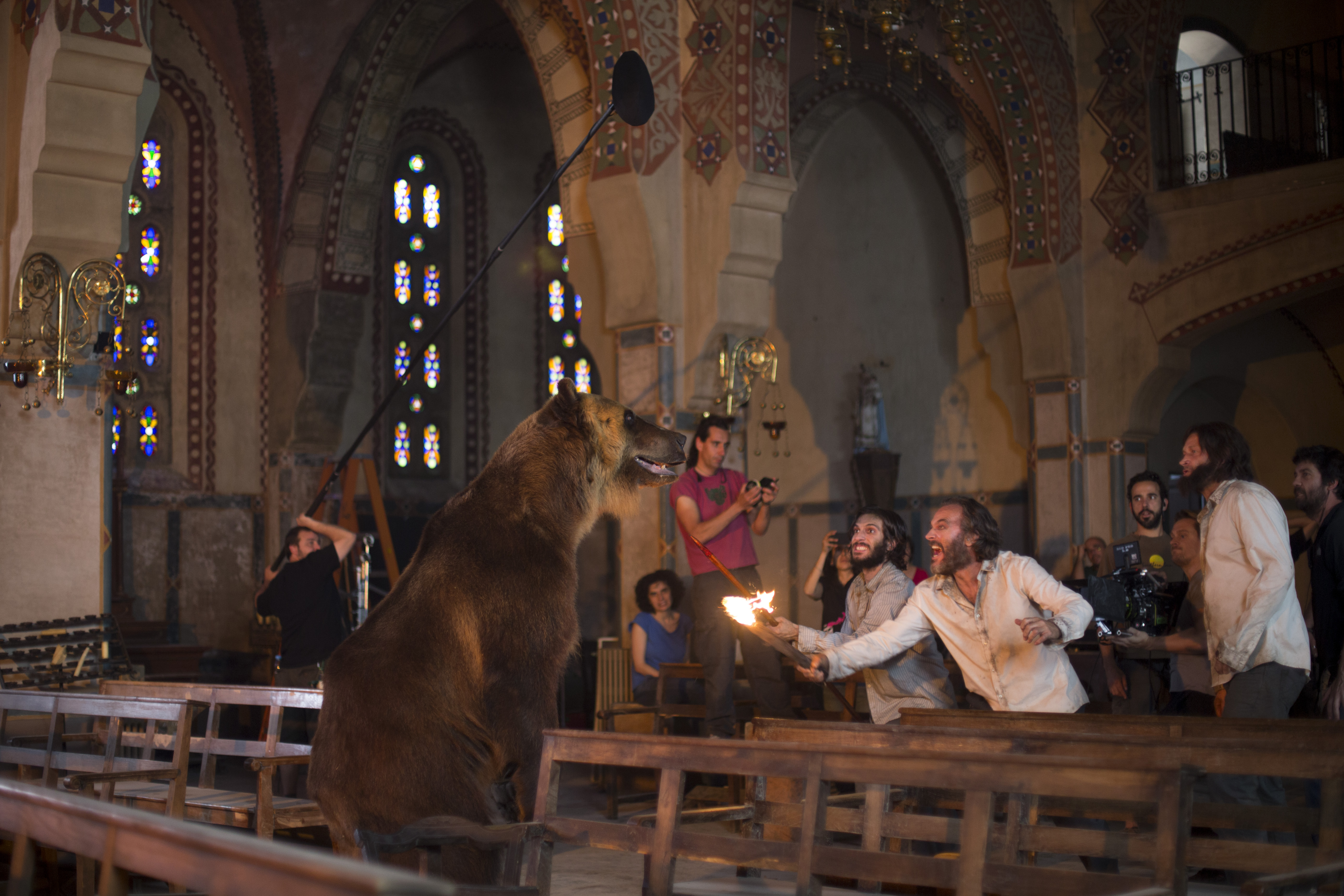 ORIOL: El oso nos costó lo nuestro! Es la primera vez que sonorizo un oso con un “face repalceing” es decir, el oso en el rodaje no rugía cuando tenia que rugir y entonces por imagen se le substituyó la cara del mismo rugiendo rodado a parte. Nos trajo de cabeza hacer la sincronía de todos esos rugidos más cercanos a un dinosaurio que a un oso. Pero el resultado funciona muy bien, no olvidemos que estamos haciendo una película de aventuras y teníamos que poner toda la carne del asador. La anécdota?. El sonido del oso rugiendo soy !!yo mismo!! (utilizando un software especial) Jajaja… ¿como lo hice?… nunca me veréis haciendo el oso delante de un micrófono!… Es algo muy intimo… jajaja.